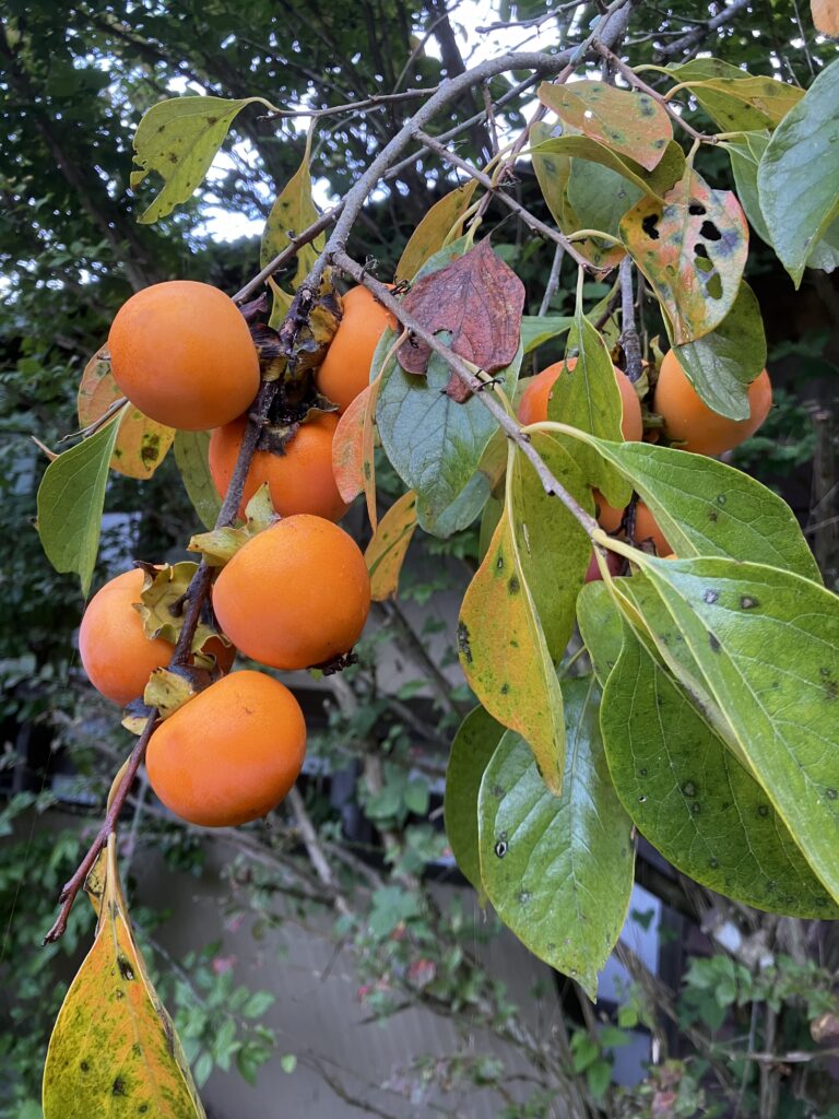 柿酢はよくわからないですが、この鮮やかなオレンジと紅葉が始まっている葉はとても美しいですよね。実りの秋も終盤になり、山も色を変えるこの季節も好きです。