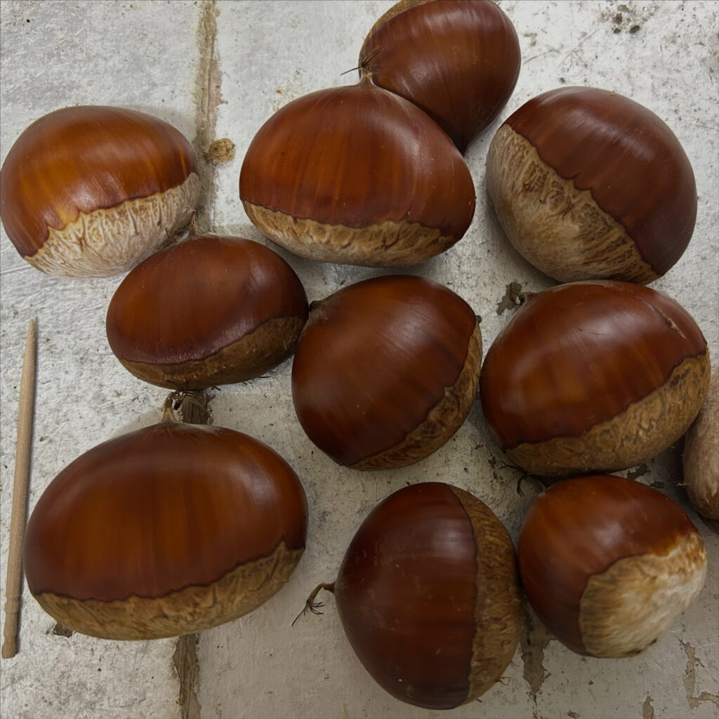 家の前には立派な栗の木があって、緑で落ちてたイガもだんだん茶色で落ちてくるように