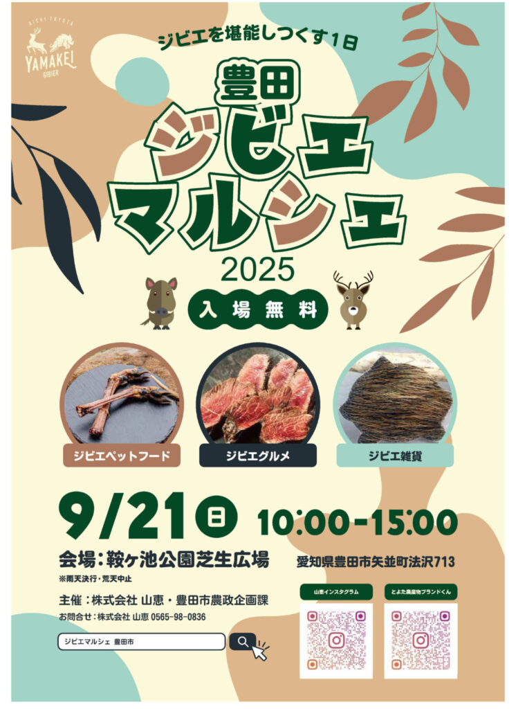 さて明日9月21日(日)は弊社主催のジビエマルシェ!!