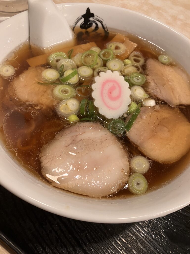 どこか懐かしい味でありながら、中毒性のあるスープと、分厚いチャーシュー、真ん中のなるとがかわいいのです🩷